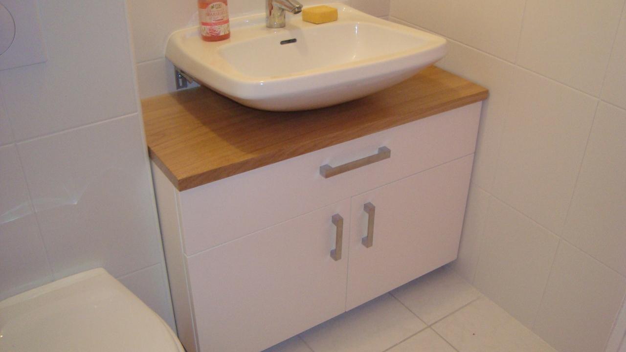 Meuble de salle de bain en médium laqué blanc et plateau chêne