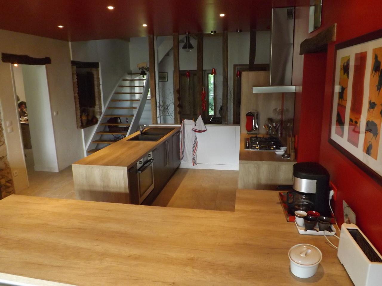 cuisine façade wengé et plan de w stratifie chêne de Nebraska