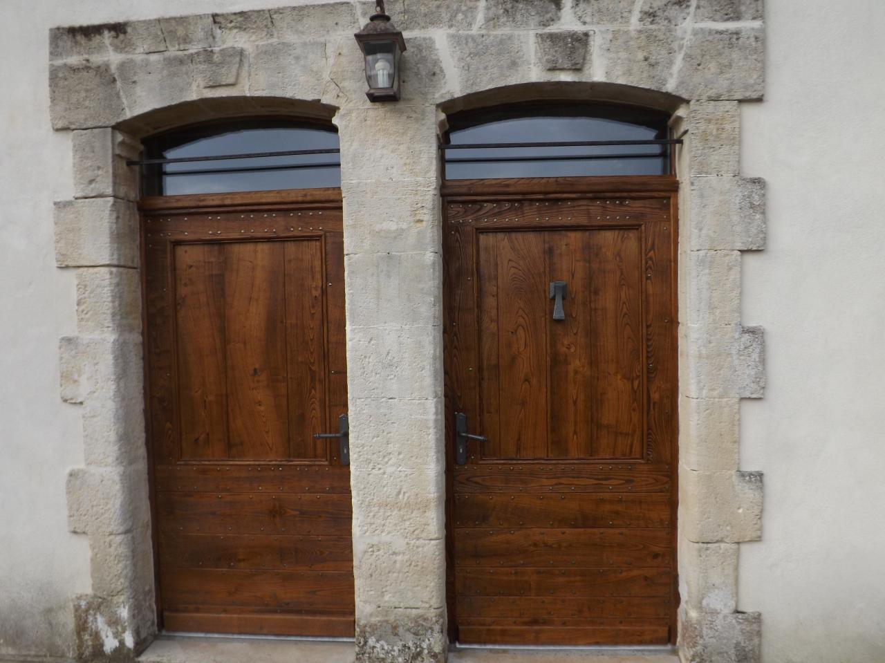 portes assemblées par clouage avec clous de marinier retournés.Le bois a été défibré afin de lui donné un aspect ancien