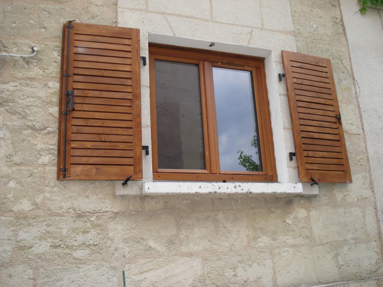 Menuiserie en sapin rouge et volets persiennes
